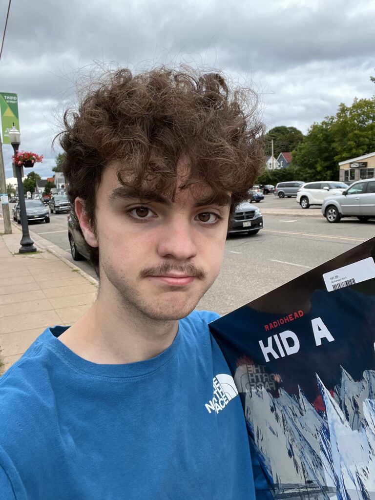 Me walking down Third street with my Kid A vinyl.